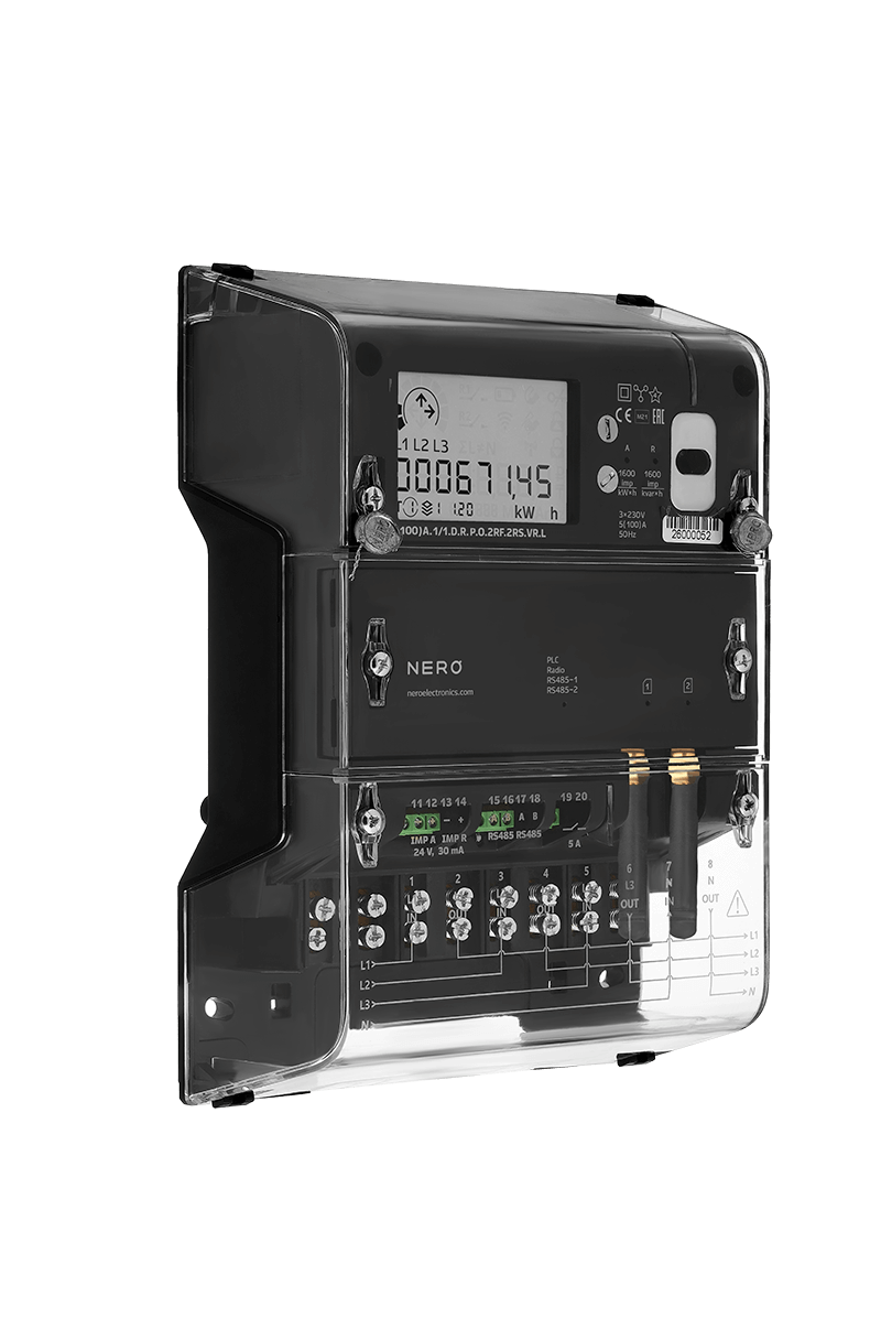 A compact multi-tariff meter with a built-in communication module. Measures and sends data on active and reactive energy, generation and consumption, powerline parameters, tampering incidents, magnet exposure, etc.